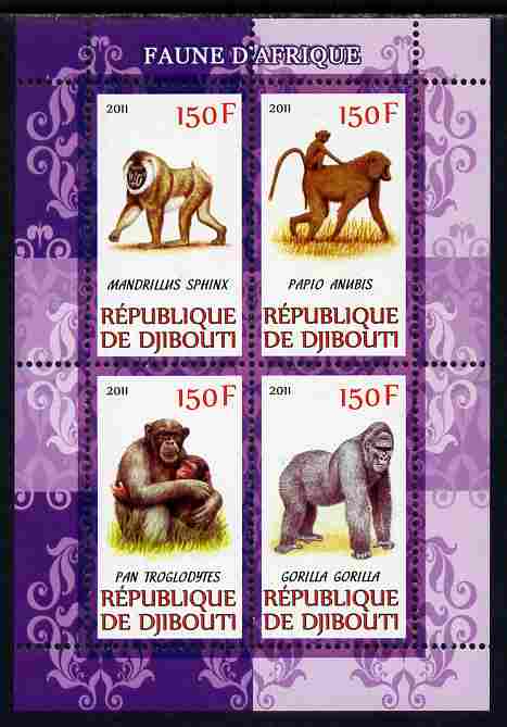 Djibouti 2011 African Fauna - Gorillas perf sheetlet containing 4 values unmounted mint