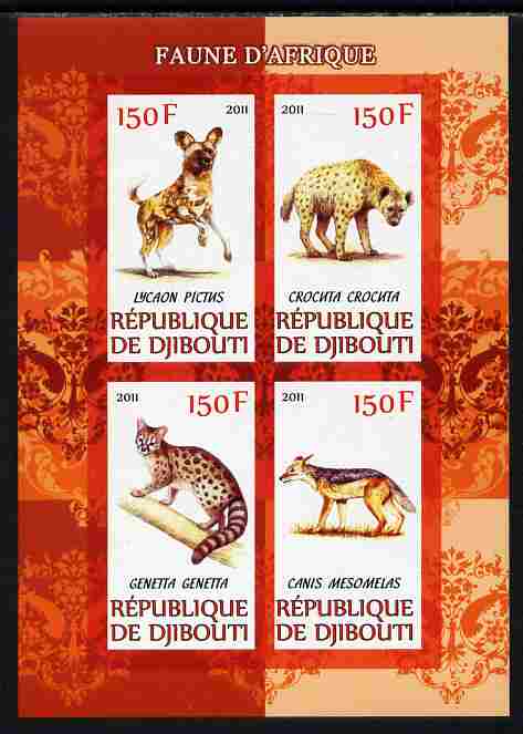 Djibouti 2011 African Fauna - Hyenas imperf sheetlet containing 4 values unmounted mint