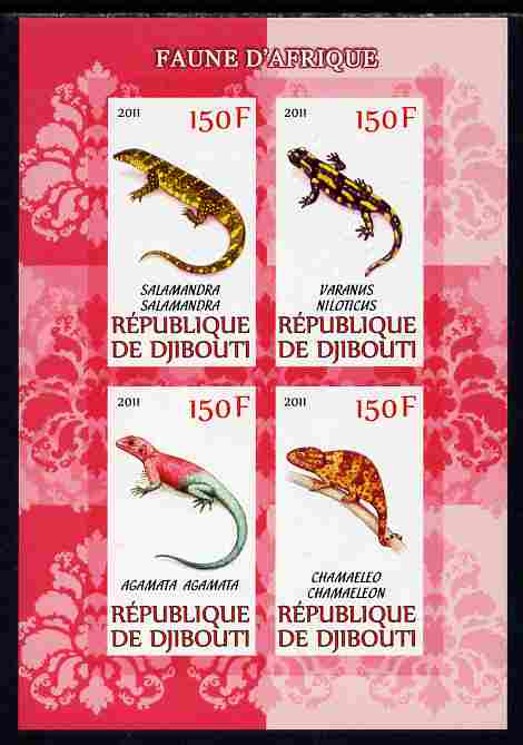 Djibouti 2011 African Fauna - Lizards imperf sheetlet containing 4 values unmounted mint
