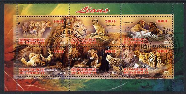 Djibouti 2013 Lions perf sheetlet containing 6 values fine cto used