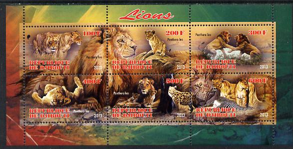 Djibouti 2013 Lions perf sheetlet containing 6 values unmounted mint