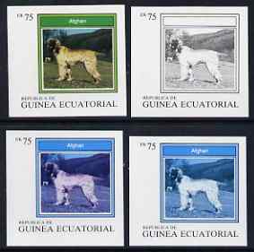 Equatorial Guinea 1977 Dogs EK75 (Afghan) set of 4 imperf progressive proofs on ungummed paper comprising 1, 2, 3 and all 4 colours (as Mi 1135)