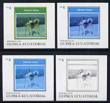 Equatorial Guinea 1977 Dogs EK8 (Siberian Husky) set of 4 imperf progressive proofs on ungummed paper comprising 1, 2, 3 and all 4 colours (as Mi 1132)