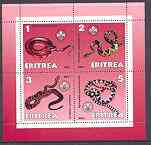 Eritrea 2001 Snakes perf sheetlet containing 4 values each with Scout Logo unmounted mint