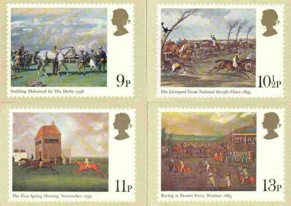 Great Britain 1979 Horseracing Paintings set of 4 PHQ cards unused and pristine