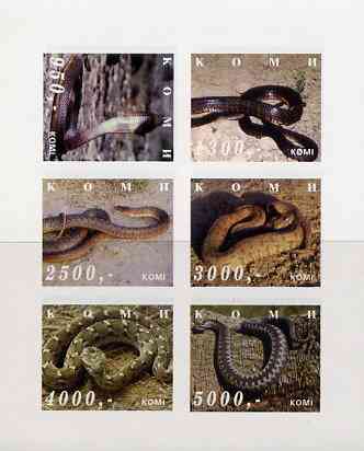 Komi Republic 1998 Snakes imperf sheetlet containing complete set of 6 values unmounted mint