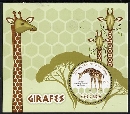 Madagascar 2015 Giraffes perf deluxe sheet containing one circular value unmounted mint