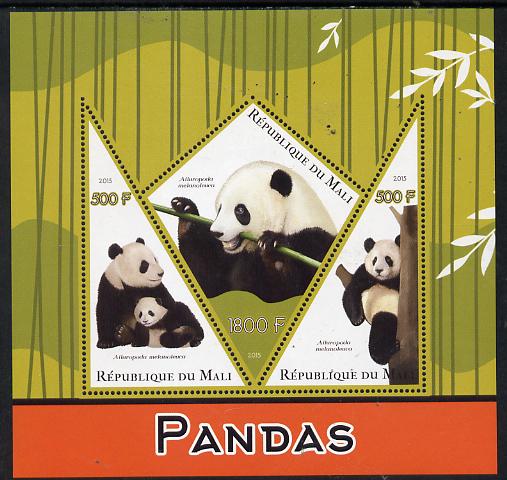 Mali 2015 Pandas perf sheetlet containing one diamond shaped & two triangular values unmounted mint