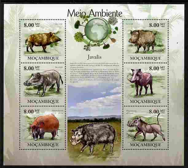 Mozambique 2010 The Environment - Boars perf sheetlet containing 6 values unmounted mint Michel 3536-41