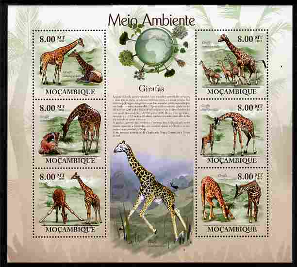 Mozambique 2010 The Environment - Giraffes perf sheetlet containing 6 values unmounted mint Michel 3530-35