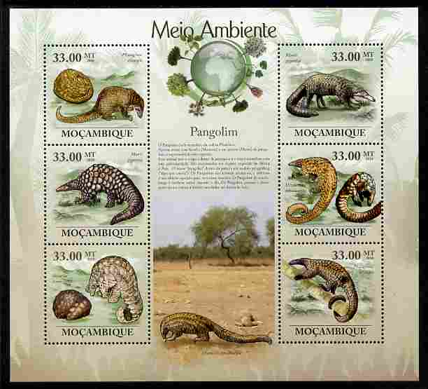 Mozambique 2010 The Environment - Pangolins perf sheetlet containing 6 values unmounted mint Michel 3590-95
