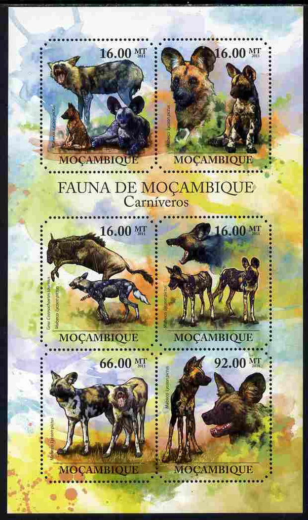Mozambique 2011 African Wild Dog perf sheetlet containing six octagonal shaped values unmounted mint