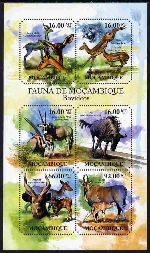 Mozambique 2011 Antelopes perf sheetlet containing six octagonal shaped values unmounted mint