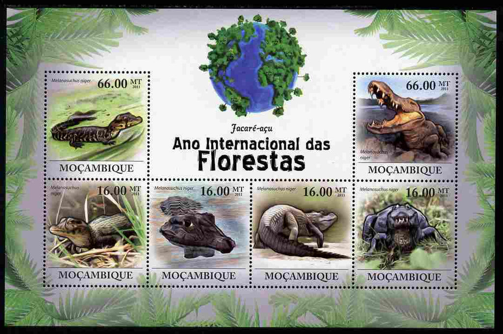 Mozambique 2011 International Year of Forests - Crocodiles perf sheetlet containing 6 values unmounted mint