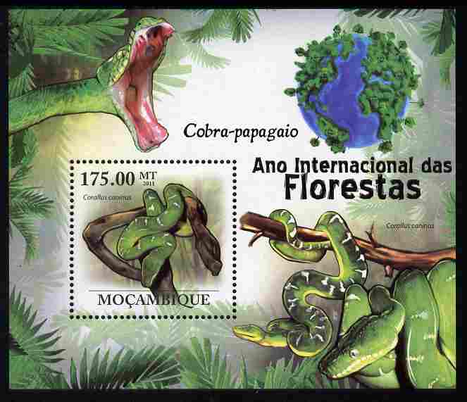 Mozambique 2011 International Year of Forests - Parrot Snakes perf s/sheet unmounted mint