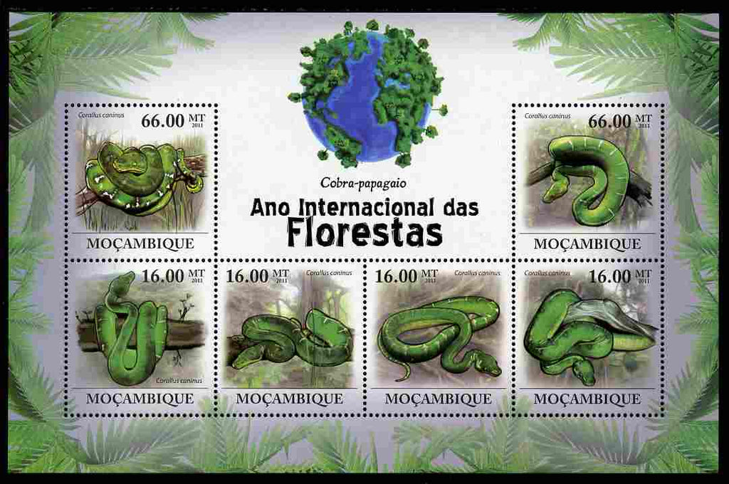 Mozambique 2011 International Year of Forests - Parrot Snakes perf sheetlet containing 6 values unmounted mint