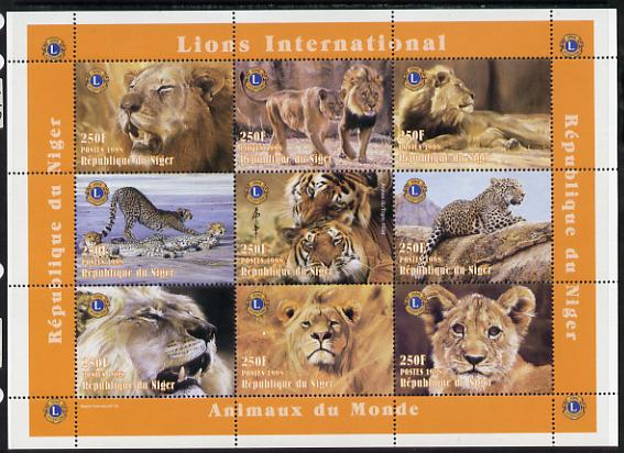 Niger Republic 1998 Animals of the World #2 (Big Cats) perf sheetlet containing 9 x 250f values each with Lions International logo unmounted mint. Note this item is privately produced and is offered purely on its thematic appeal Scott #1004