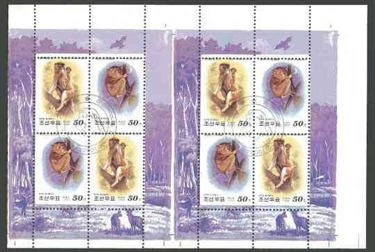 North Korea 2000 Primates joined pair of m/sheets from uncut archive sheet with special illustrated cancel, extremely rare thus