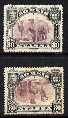 Nyassa Company 1901 Dromedaries 80r with inverted centre plus normal both mounted mint, SG 35a