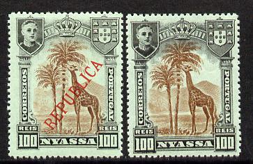 Nyassa Company 1911 Giraffe 100r with REPUBLICA overprint omitted plus normal both mounted mint, SG 60var