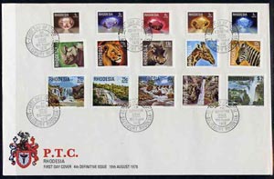 Rhodesia 1978 definitive set of 15 values complete on Official unaddressed cover with first day cancel, SG 555-69