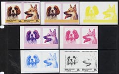 St Vincent - Bequia 1985 Dogs (Leaders of the World) 55c (King Charles & GSD) set of 7 imperf se-tenant progressive proof pairs comprising the 4 individual colours, plus 2, 3 and all 4-colour composites, unmounted mint