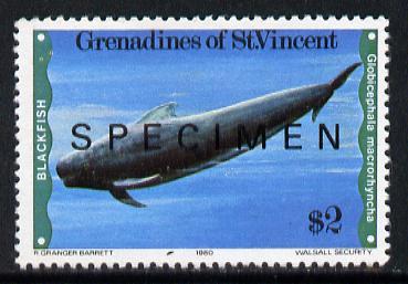 St Vincent - Grenadines 1980 Whales & Dolphins $2 (Blackfish) opt'd Specimen unmounted mint, as SG 166
