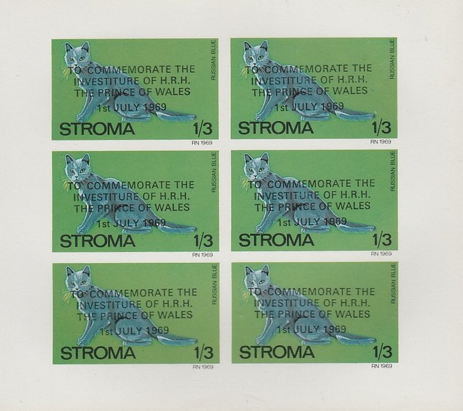 Stroma 1969 Cats 1s3d Russian Blue opt'd for Investiture of Prince of Wales complete imperf sheetlet of 6 unmounted mint