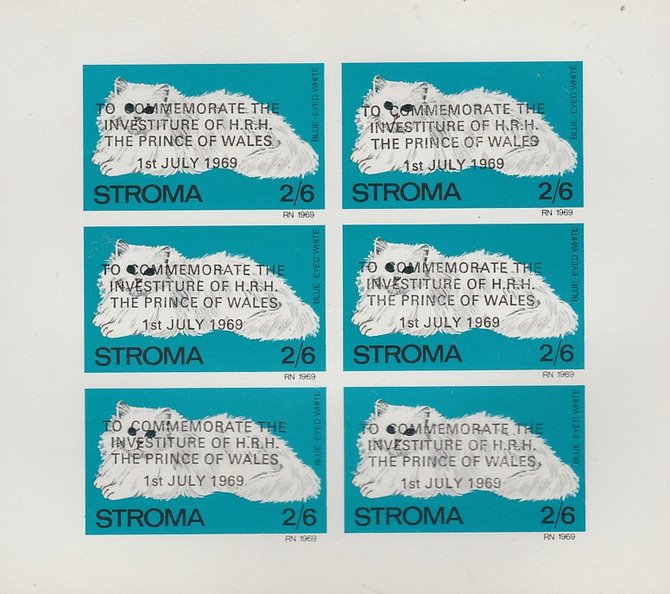 Stroma 1969 Cats 2s6d Blue Eyed White opt'd for Investiture of Prince of Wales complete imperf sheetlet of 6 unmounted mint