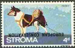 Stroma 1970 Dogs 4d (Husky) perf single with 'European Conservation Year 1970' opt inverted unmounted mint*