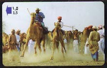 Telephone Card -Oman 1.5r phone card showing Camel Racing
