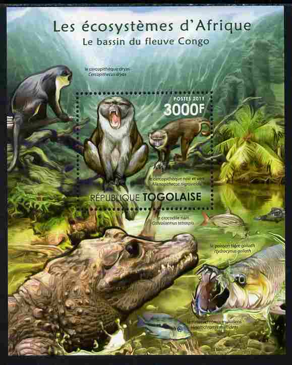 Togo 2011 Ecosystem of Africa - Animals of the River Congo perf s/sheet unmounted mint