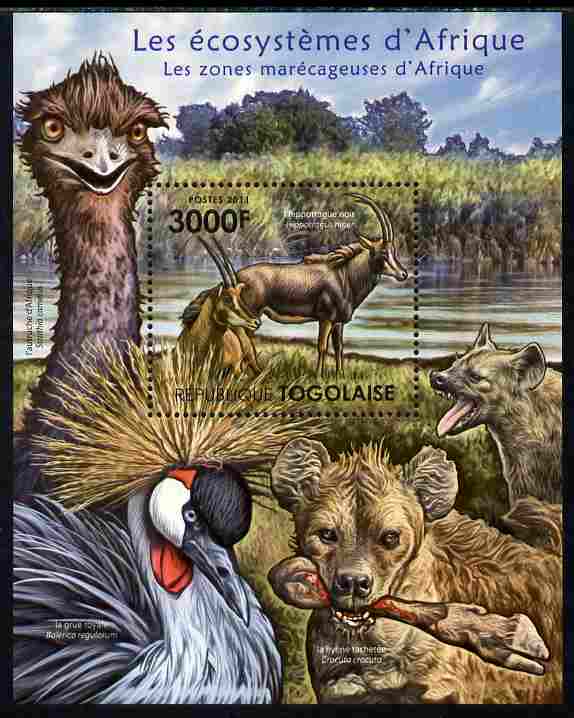 Togo 2011 Ecosystem of Africa - Animals of the Swampy Areas perf s/sheet unmounted mint