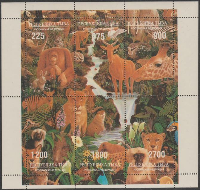 Touva 1996 Wild Animals Composite sheetlet containing complete set of 6 values unmounted mint. Note this item is privately produced and is offered purely on its thematic appeal