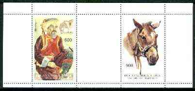 Touva 1999 Horses sheetlet containing complete set of 2 values (plus blank label) unmounted mint
