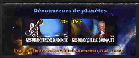 Djibouti 2010 Planets & Sir Frederich Herschel imperf sheetlet containing 2 values unmounted mint