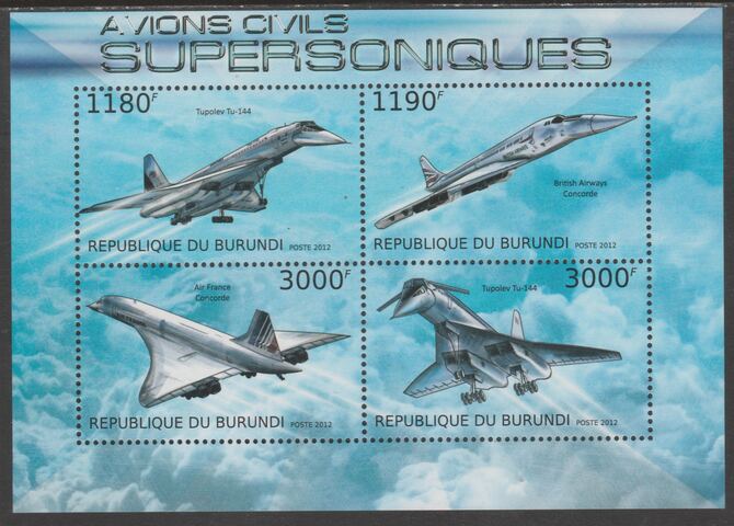 Burundi 2012 Supersonic Aircraft perf sheetlet containing 4 values unmounted mint.