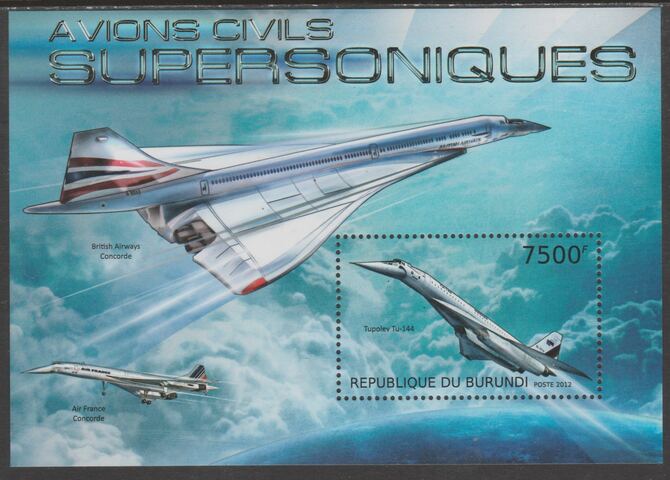 Burundi 2012 Supersonic Aircraft perf souvenir sheet containing 1 value unmounted mint.