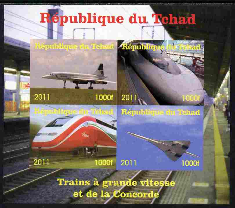 Chad 2011 Trains & Concorde imperf sheetlet containing 4 values unmounted mint. Note this item is privately produced and is offered purely on its thematic appeal
