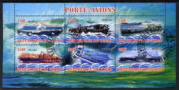 Chad 2012 Aircraft Carriers #1 perf sheetlet containing 6 values fine cto used