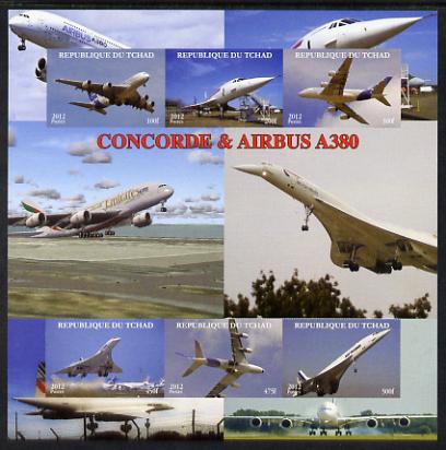 Chad 2012 Concorde & Airbus imperf sheetlet containing 6 values unmounted mint. Note this item is privately produced and is offered purely on its thematic appeal.
