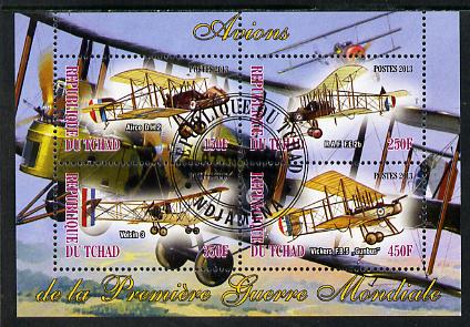 Chad 2013 Aircraft of WW1 #2 perf sheetlet containing 4 values fine cto used