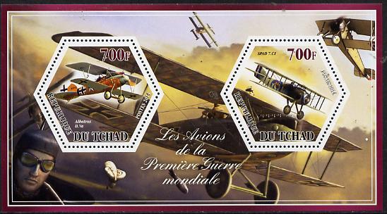 Chad 2014 Aircraft of World War 1 #1 perf sheetlet containing two hexagonal-shaped values unmounted mint