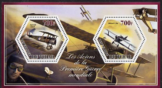 Chad 2014 Aircraft of World War 1 #2 perf sheetlet containing two hexagonal-shaped values unmounted mint