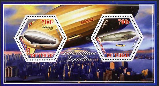 Chad 2014 Airships #1 perf sheetlet containing two hexagonal-shaped values unmounted mint