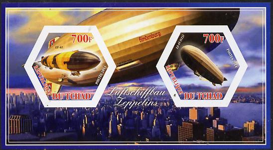 Chad 2014 Airships #3 imperf sheetlet containing two hexagonal-shaped values unmounted mint