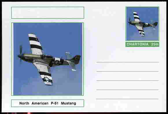 Chartonia (Fantasy) Aircraft - North American P-51 Mustang postal stationery card unused and fine