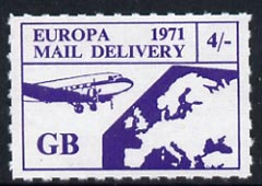 Cinderella - Great Britain 1971 Rouletted 4s purple (Europe Airmail rate) produced for use during Great Britain Postal strike unmounted mint