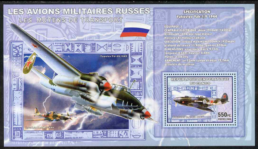 Congo 2006 Transport - Russian Military Aircraft (Yakovlev) perf souvenir sheet unmounted mint
