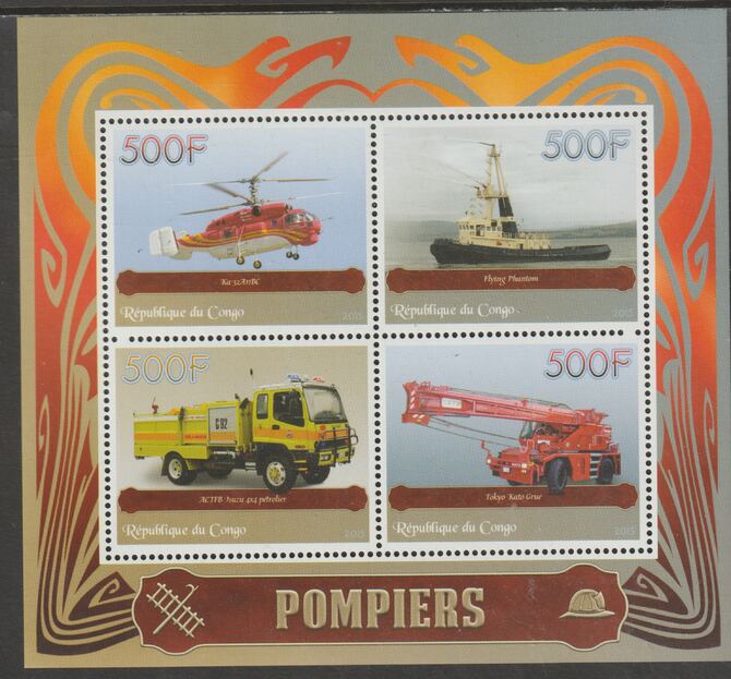 Congo 2015 Fire Fighters perf sheet containing four values unmounted mint